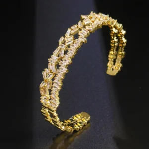 Add refined sparkle to your wrist with our Baguette Stone Studded Openable Bracelet, available in both Silver and Golden finishes. Designed with precision-cut zircon stones in a classic baguette shape, this bracelet offers a luxurious look with everyday wearability.